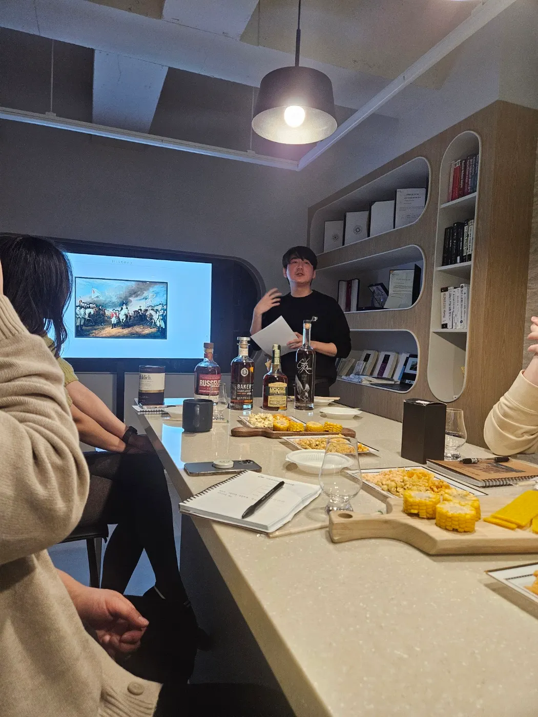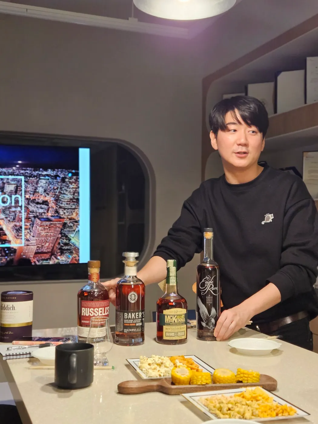 음식은 배달로 진행하기로 협의했고, 버번과 페어링할 옥수수 라인업은 다음과 같습니다.