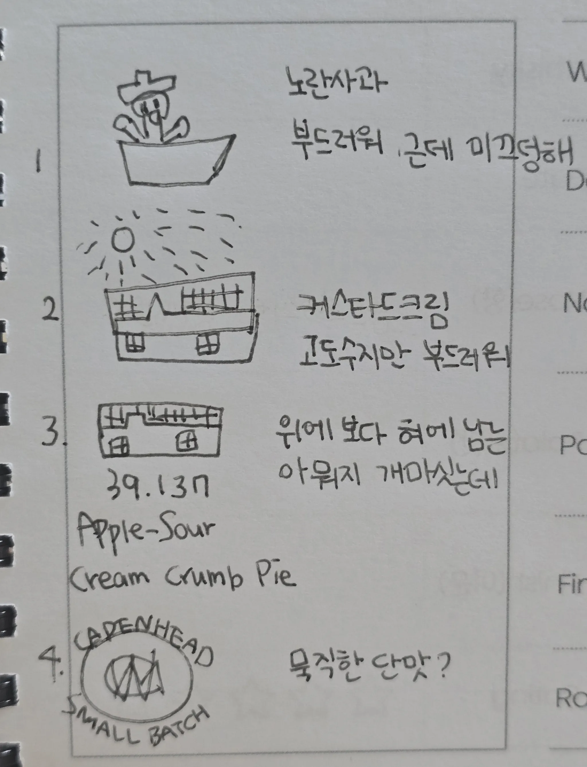 추천은 5가지 해주셨고 그중에 4잔 마셨습니다. 모두 18년, 26년, 32년 등 고숙성으로 아주 호사를 부렸지요. 모두 사과, 배 중간의 부드러움과 미끄러운 질감의 피니쉬가 공통적이었어요. 물론 링크우드의 특징일 수 있겠지만 버번캐 고숙성이라 그런걸 수 있겠네요. 차이가 있다면 각각 노란사과, 청사과, 익은 빨간 사과등으로 달랐달까요. 미끄러운 질감도 어떤건 기름의 오일리함, 어떤 건 버터 같은 차이가 있었습니다.