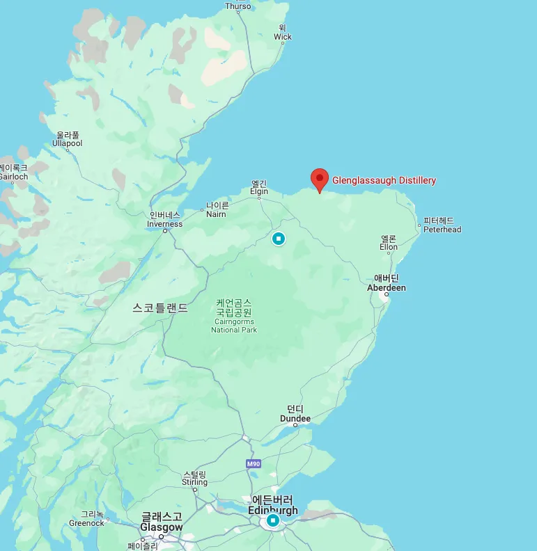 글렌글라사 증류소는 스코틀랜드 북동부 지역의 샌드엔드 베이 해변에 위채해 있으며, 의미는 녹회색의 계곡이란 뜻이라고 합니다.
